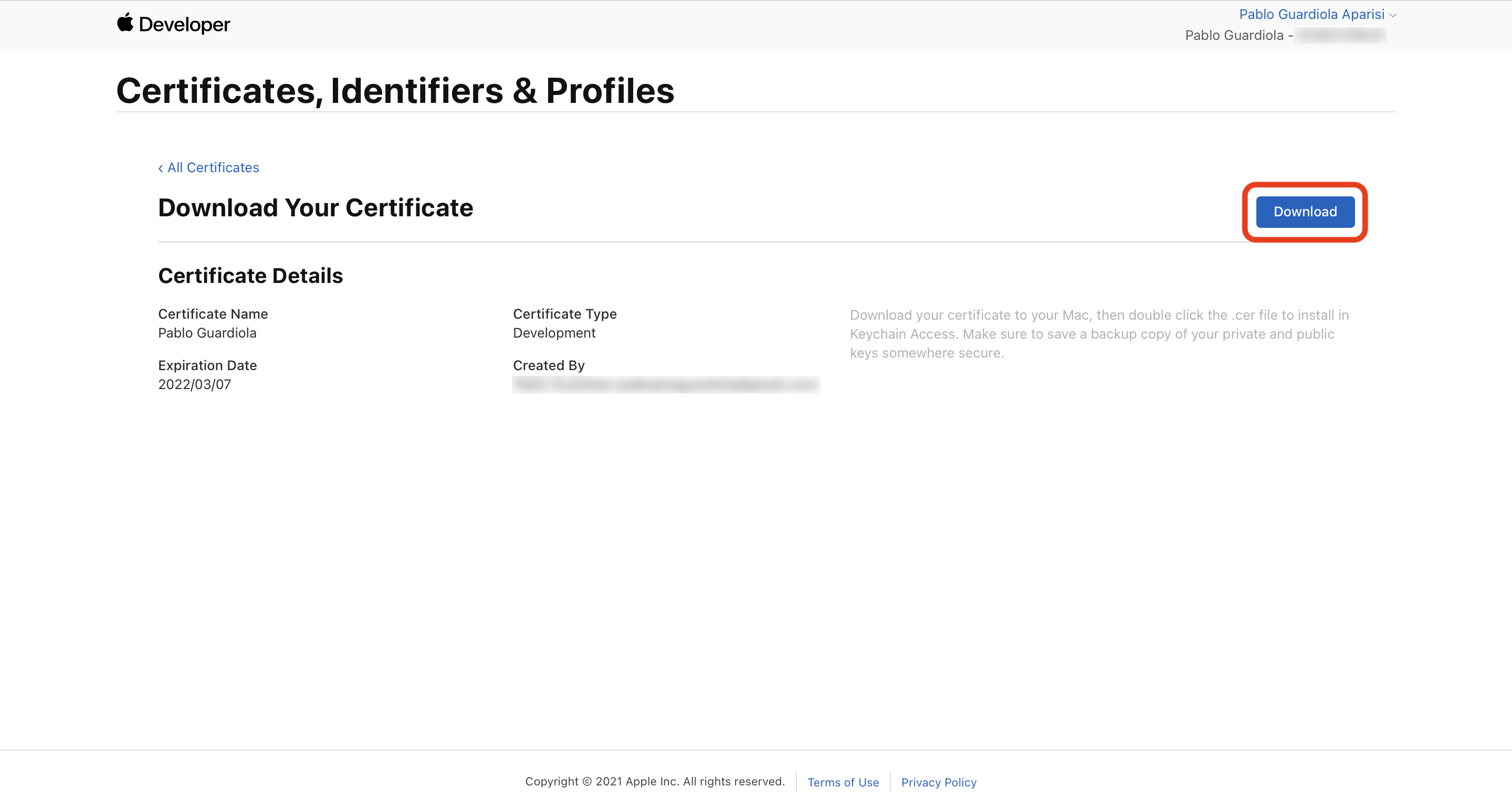 Once we have the Certificate Request, we will create a certificate from our developer account.