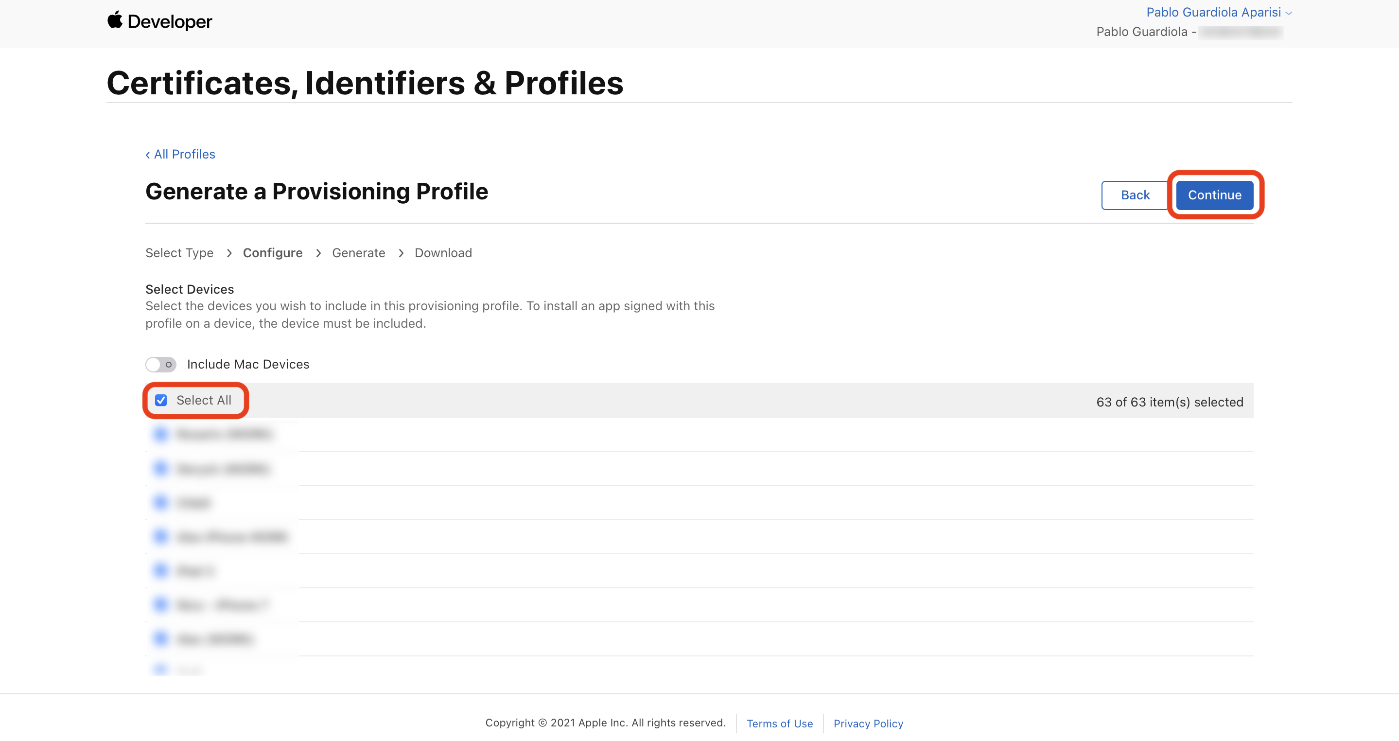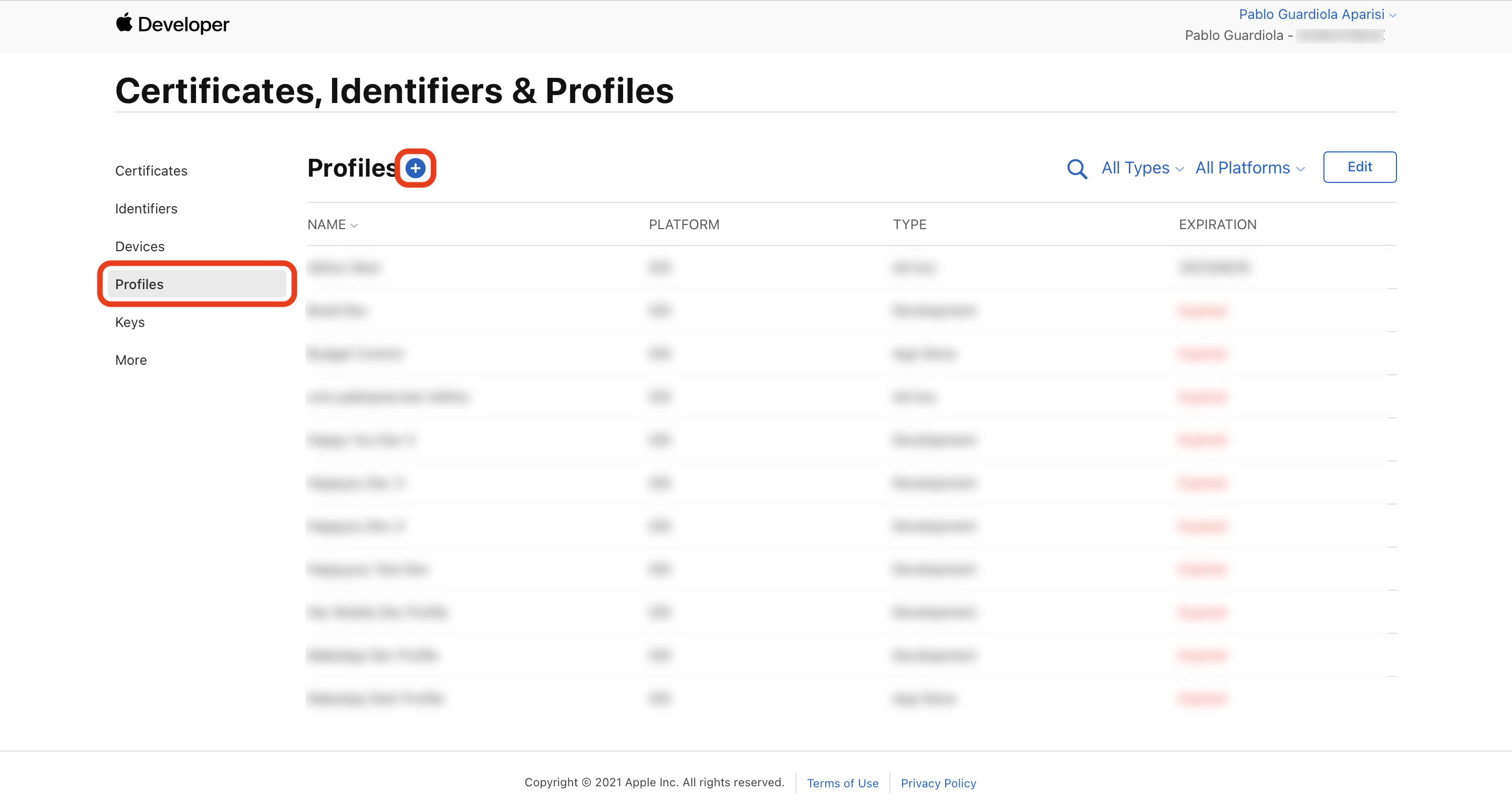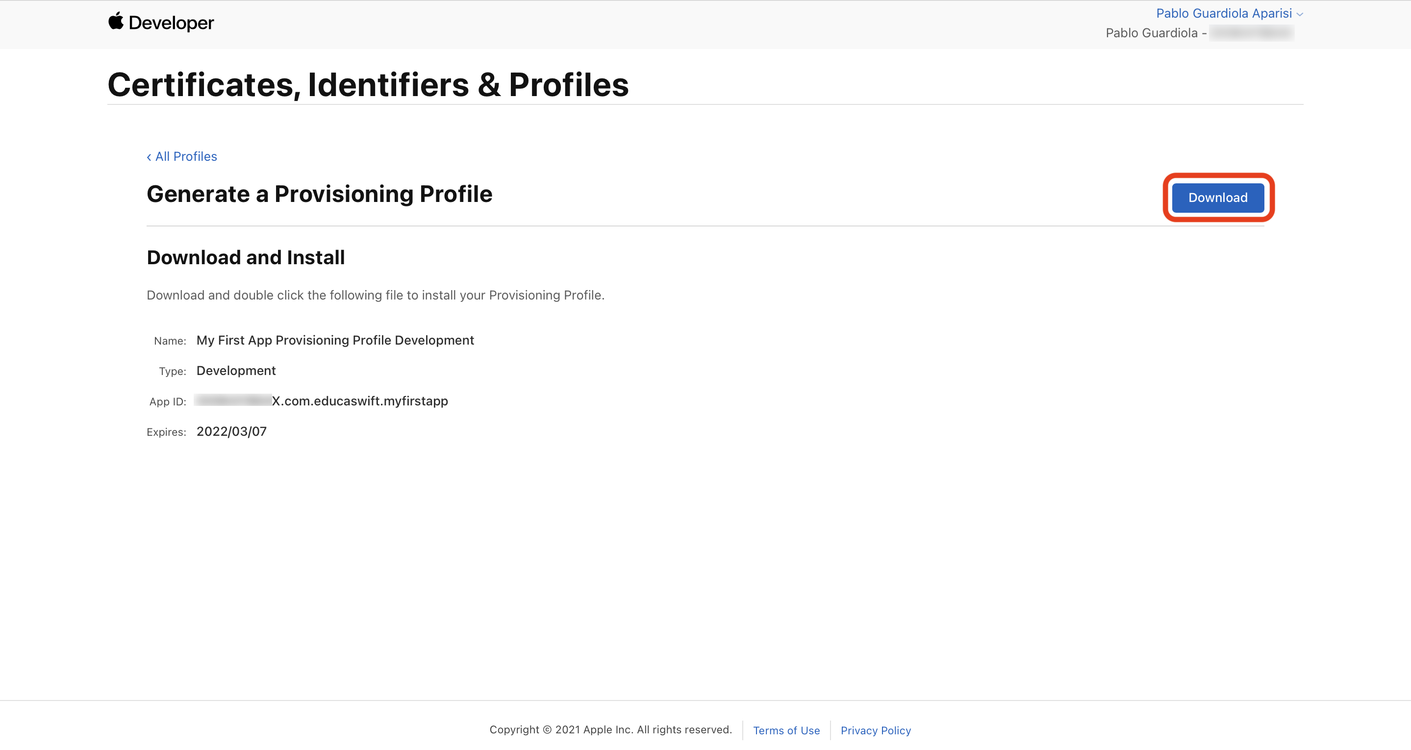 Lastly, we will create the Provisioning Profile, in this case for development.