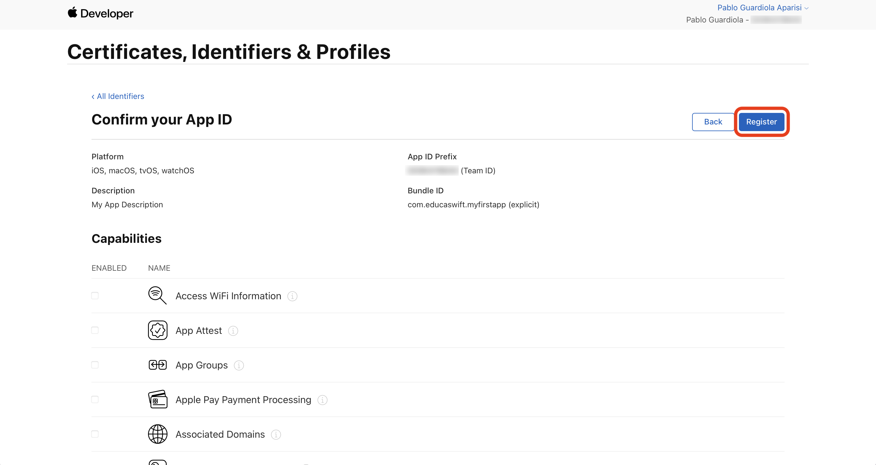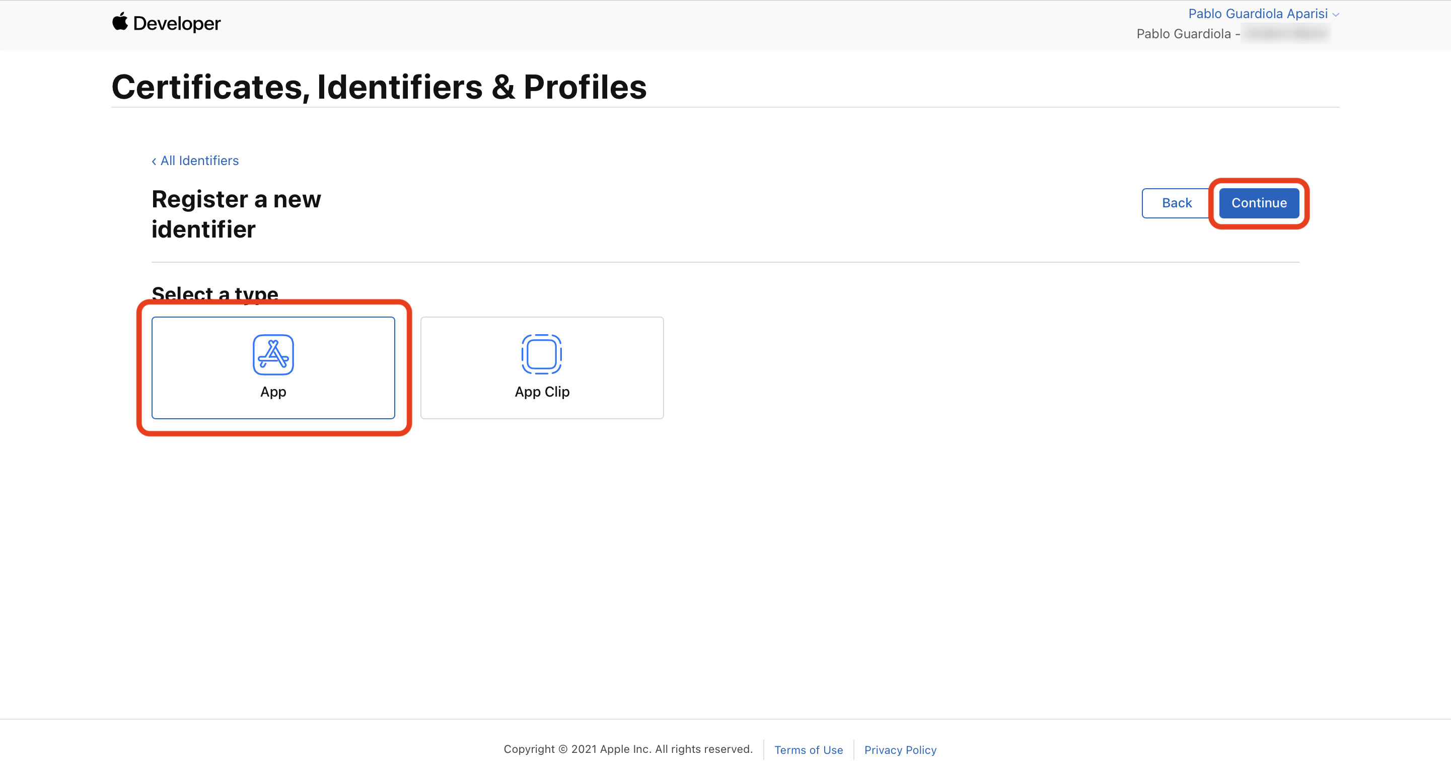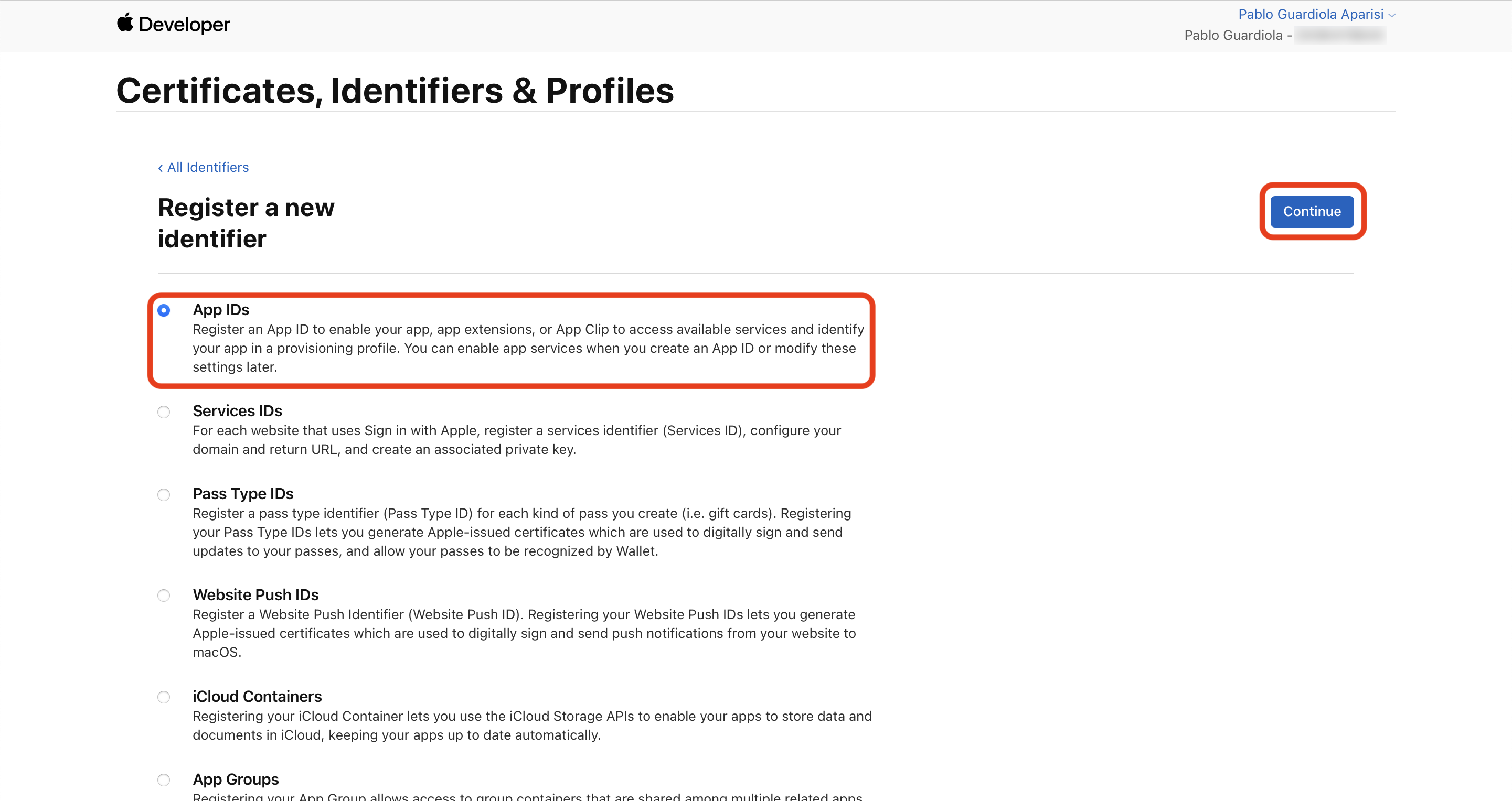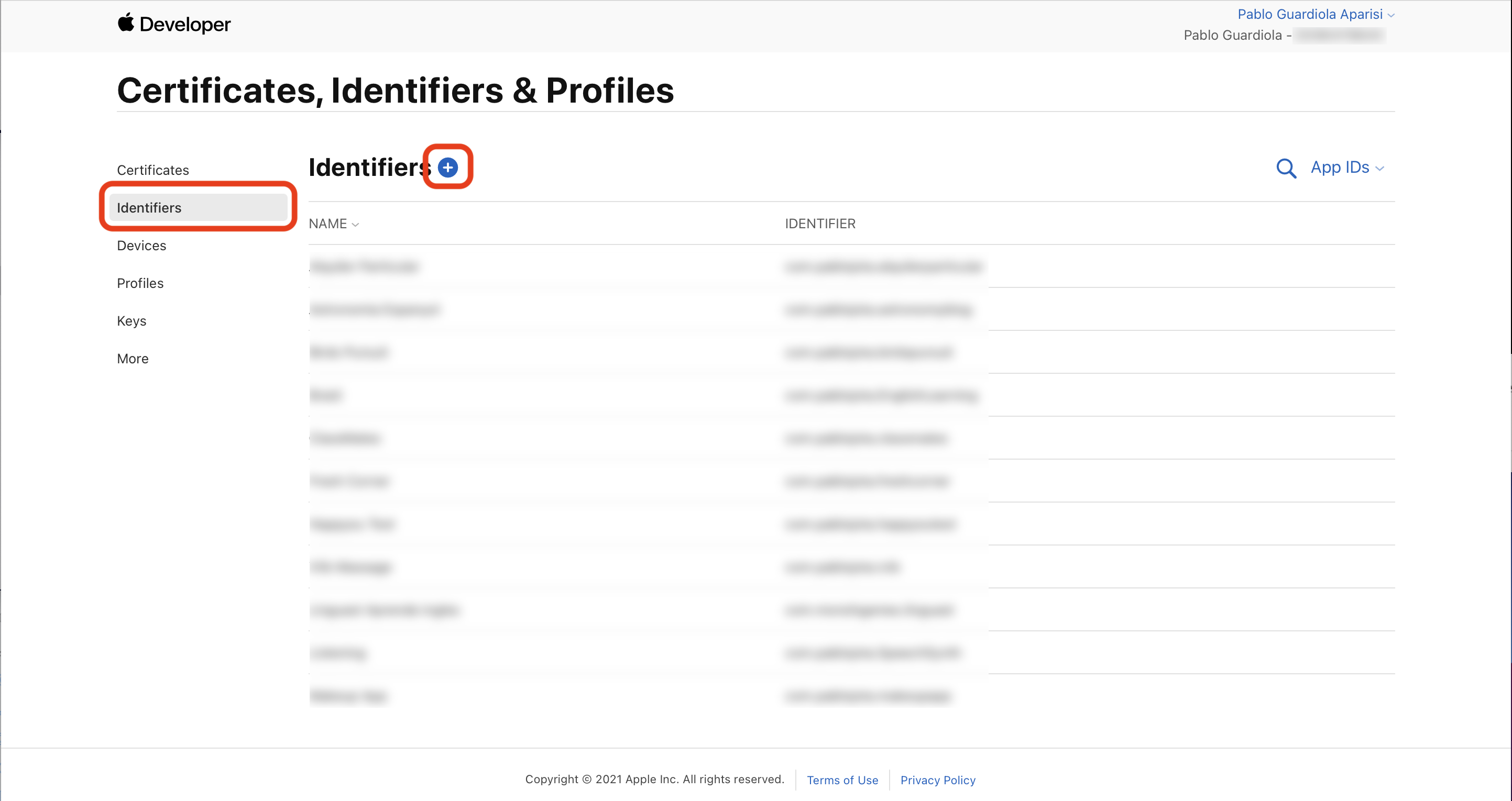 The first step is to create an Identifier, which will include the bundle identifier we use in Xcode.