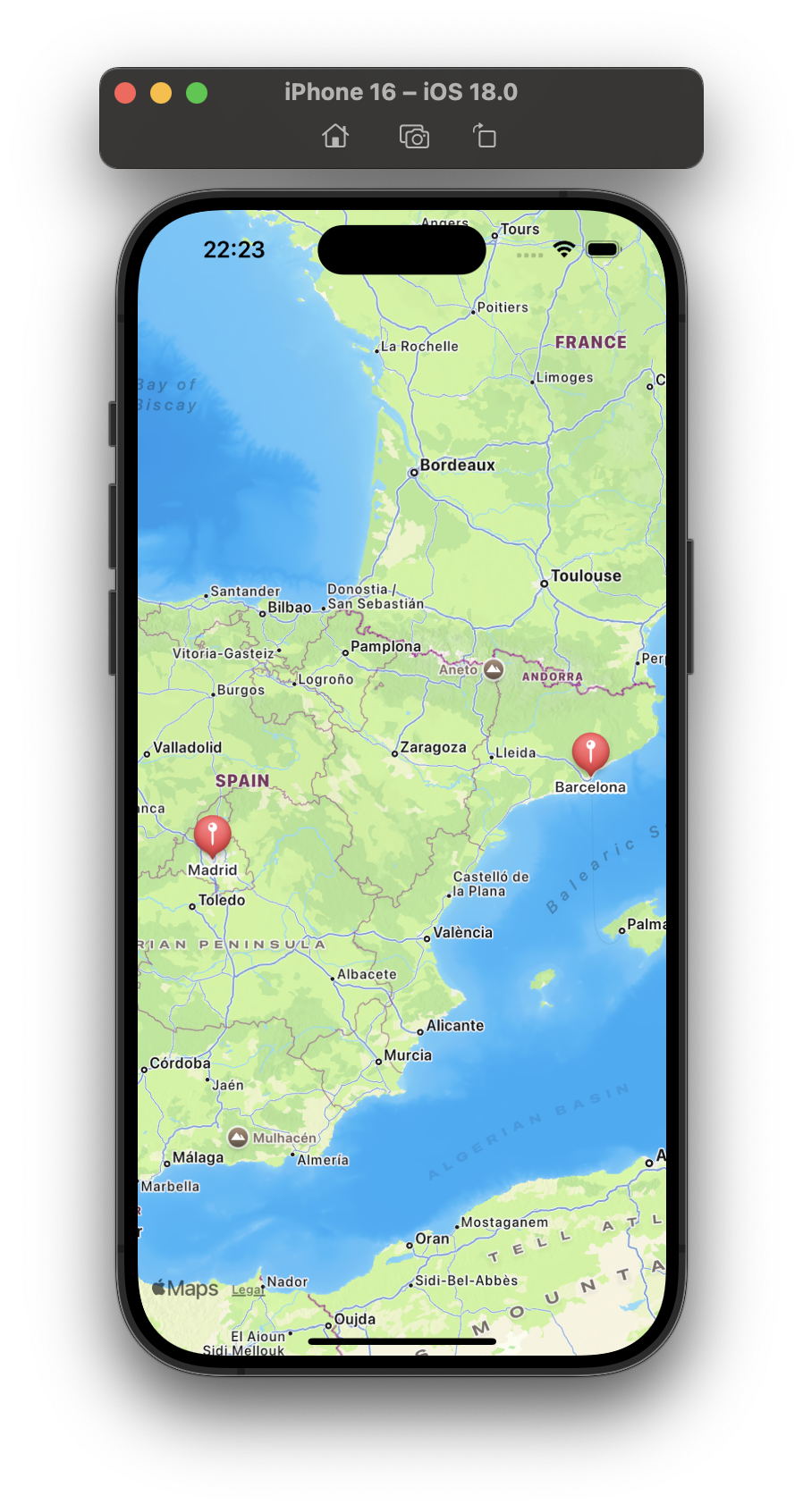 Marker("Madrid", coordinate: CLLocationCoordinate2D(latitude: 40.4167, longitude: -3.7033))