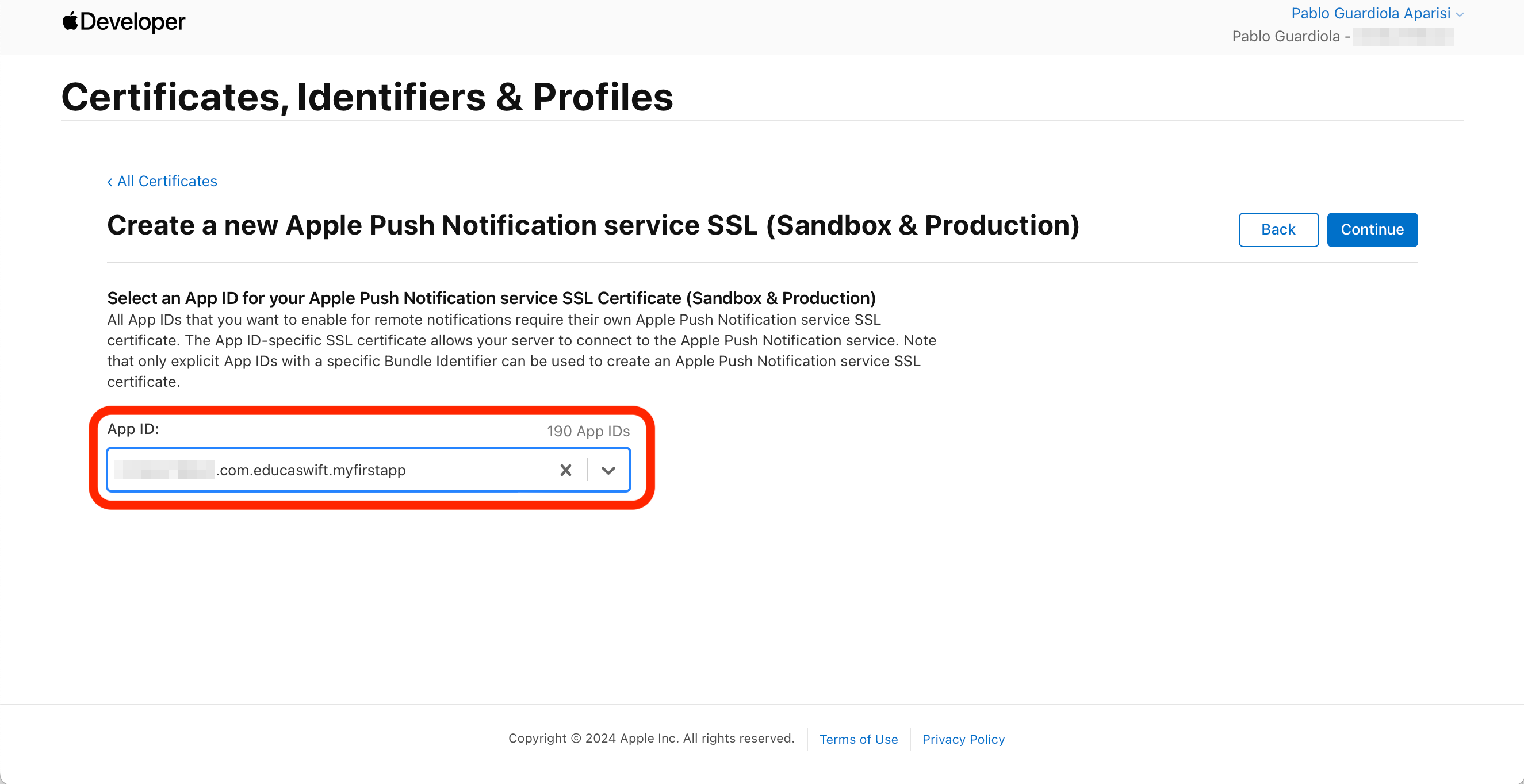Select your App's Identifier.