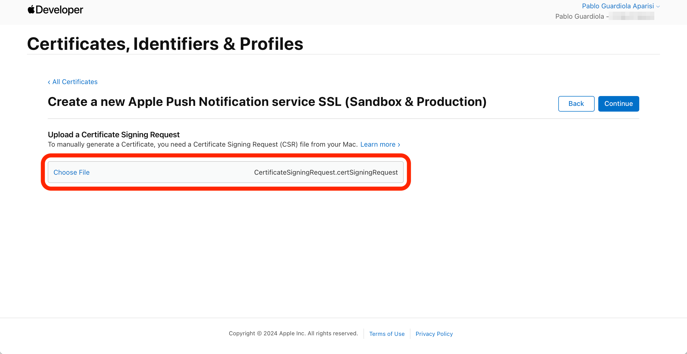 Creating APNs certificates