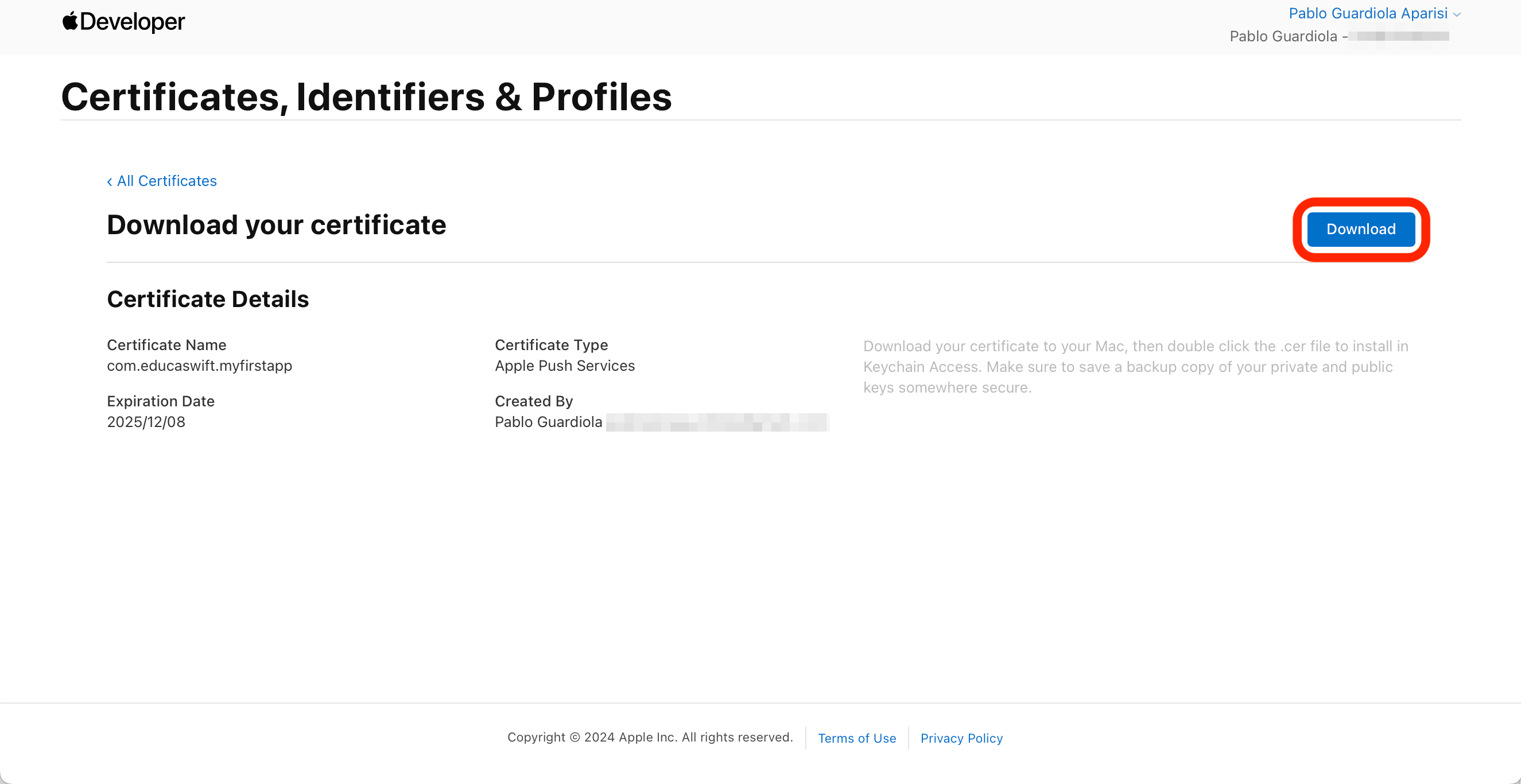 Download your new APNs certificate.