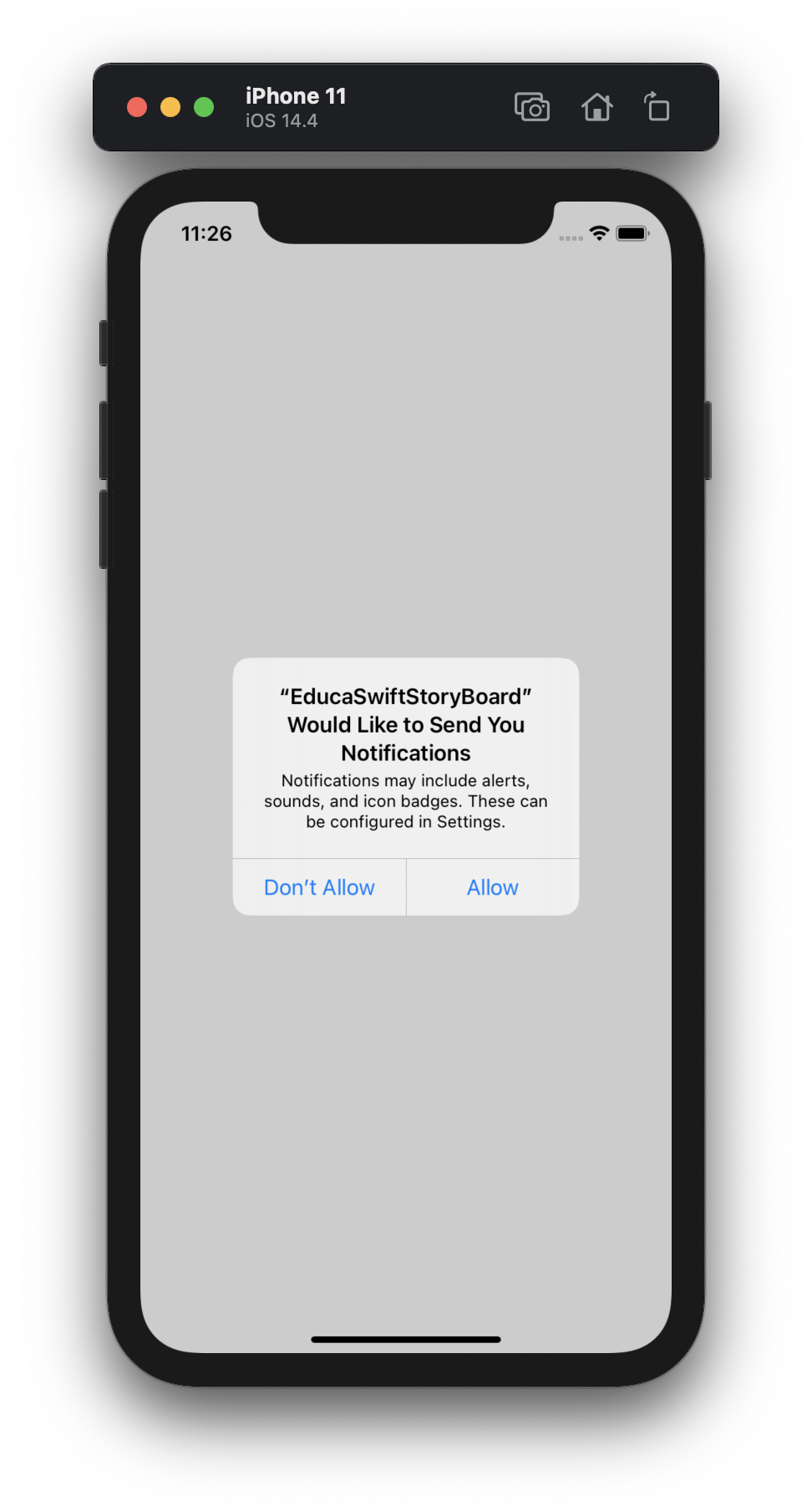To show the notifications to the user, it is necessary to ask for his permission. We can ask for permission at any point in our code using UNUserNotificationCenter.